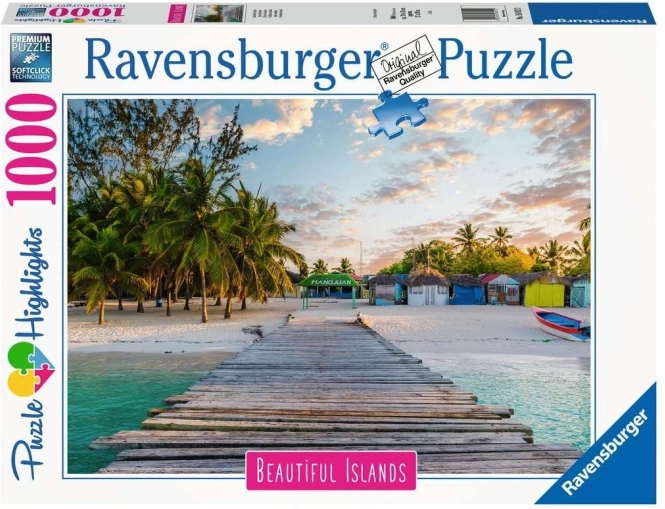 Odkrijte lepoto Maldivov s sestavljanko Ravensburger s 1000 koščki, ki ponuja žive barve, precizen izsek in popolno prileganje koščkov. Idealna za relaksacijo in skupno zabavo od 14 let dalje.