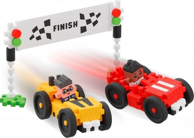 Ustvarite svoje mestno dirkališče in odločite, kdo prvi prečka ciljno črto! Z nizom Waffle Mini boste sestavili 2 dirkalna bolida, označili ciljni trak in progo ter uživali v urah domiselne zabave. Odlično za samostojno igro ali skupno igro sorojencev in prijateljev.