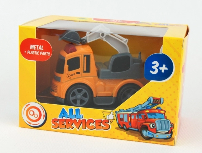 Kovinsko vozilo v škatliV ponudbi: gasilski avto, policijski avto, reševalno vozilo, bager.