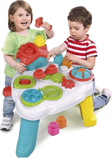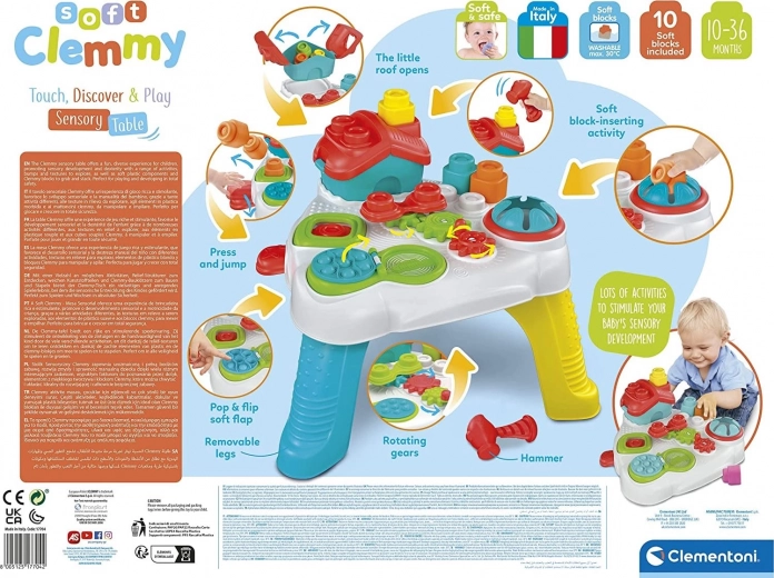 Ta senzorična igralna miza Baby Clementoni je odlično orodje za otrokov razvoj. S teksturirano površino in barvnimi elementi omogoča otrokom vadbo tipa in ročnih veščin. Miza vsebuje hišico z odpiralno streho in vstavljivimi odprtinami, kjer lahko otroci zabijajo mehke kocke s kladivom. Edinstvene funkcije, kot so zobniki in katapult za kocke, ponujajo ure interaktivne zabave.