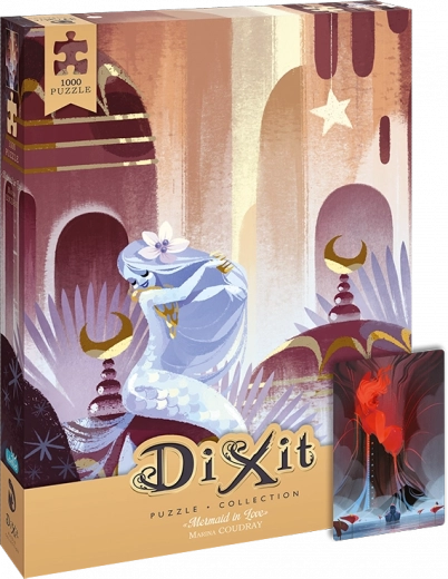 Vstopite v sanjski svet igre DIXIT in odkrijte ikonične ilustracije v obliki premium sestavljanke. Motiv Zaljubljena morska deklica ilustratorke Marine Coudray izstopa z nežnimi barvami in domišljijo, ki spodbuja ustvarjalnost med sestavljanjem in med igro.