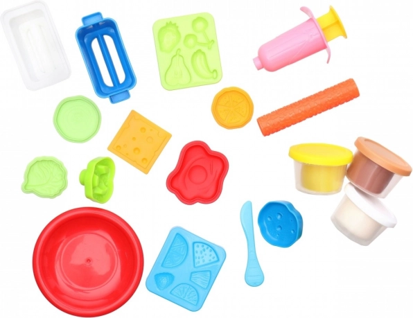 Komplet vsebuje praktične modelčke, valjar in nožek, s katerimi otroci zlahka oblikujejo toaste, nadeve in okraske. Odlično za prve kuharske poskuse z modelino.