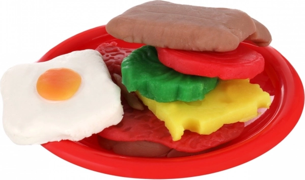 Ta ustvarjalni komplet otroške modeline spremeni obedovanje v igro. Otroci se lahko igrajo kuharje in iz mehke modeline oblikujejo toaste, rezine sira, zelenjavo in druge „poslastice“. S preprostimi orodji je oblikovanje hitro in zabavno.