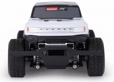 RC avto Carrera GMC Hummer EV je zasnovan za dinamično vožnjo po terenu in utrjenih podlagah. Visoko podvozje, velika terenska kolesa in učinkovito dušenje omogočajo gladko premagovanje neravnin. Natančno proporcionalno upravljanje nudi odličen nadzor nad smerjo in hitrostjo, zato bo vožnja všeč tako začetnikom kot izkušenim.