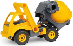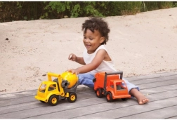 Praktične funkcije, kot so vrteči boben, dvižna kabina in varnostno varovalo proti neželenemu prevrnitju, naredijo ta mešalnik odličnega sopotnika za domišljijsko igro. Kompaktne mere in robustna kolesa zagotavljajo gladko vožnjo po različnih podlagah, tako na tleh v sobici kot tudi zunaj na terasi ali vrtu.
