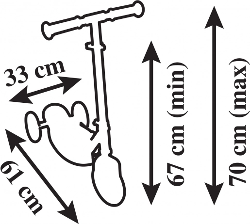 - Prilagoditev otroku: po višini nastavljivo krmilo (pribl. 67–70 cm).