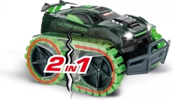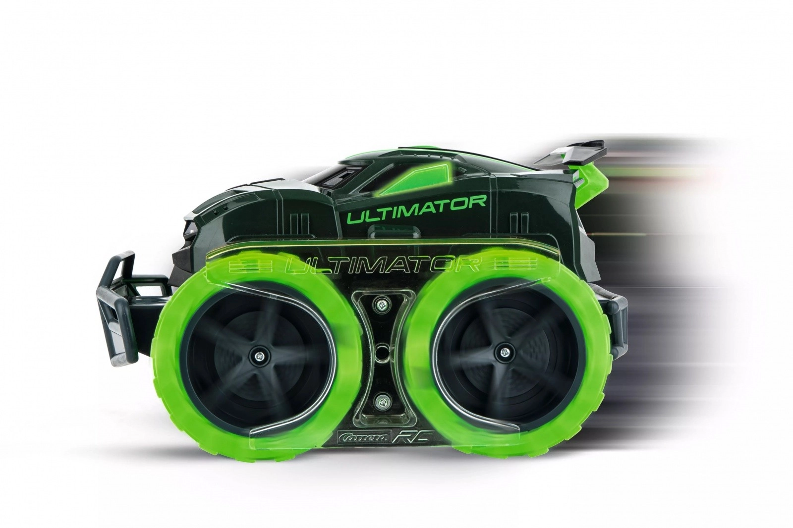 Z RC avtom Carrera ULTIMATOR 2 v 1 boste zanesljivo premagali hribe in doline! Ne glede na to, kakšna podlaga vas danes čaka na vaši pustolovski poti, ste z Ultimatorjem dobro pripravljeni na vsak teren. S pritiskom na gumb na daljinskem upravljalniku preklopite z pogona na kolesa na verižni pogon in premagate vse ovire na smučišču. Če želite voziti nekoliko hitreje, lahko ponovno z enostavnim pritiskom na gumb preklopite na pogon na kolesa. Tudi po dežju ste pripravljeni na akcijo: zaščita pred škropljenjem vode ščiti Ultimator pred vlago.