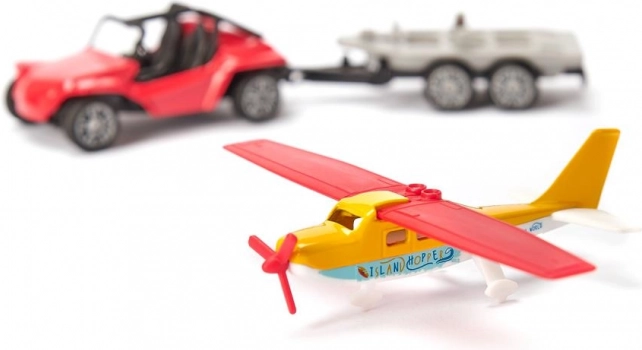 Del paketa je srebrna prikolica s posebnim nosilcem za letala, kar omogoča enostaven in varen prevoz. Vsaka podrobnost je skrbno zasnovana za čim več zabave in pustolovščin.