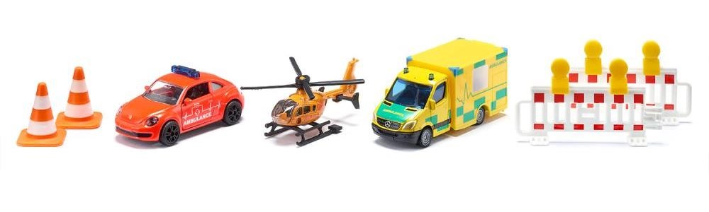 Ta kakovosten darilni komplet SIKU prinaša v otroško sobo akcijo in napetost. Modeli reševalnih vozil v merilu za majhne roke so izdelani iz kovine s plastičnimi detajli, zato prenesejo tudi intenzivno igro. Realistični elementi, kot so odpirajoča se vrata reševalnega avtomobila, vrtljiv rotor helikopterja in izraziti opozorilni potiski, spodbujajo domišljijo in razvijajo motoriko.