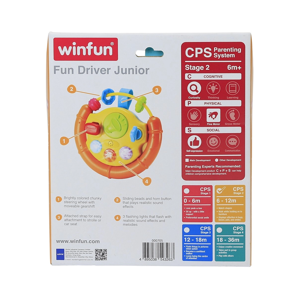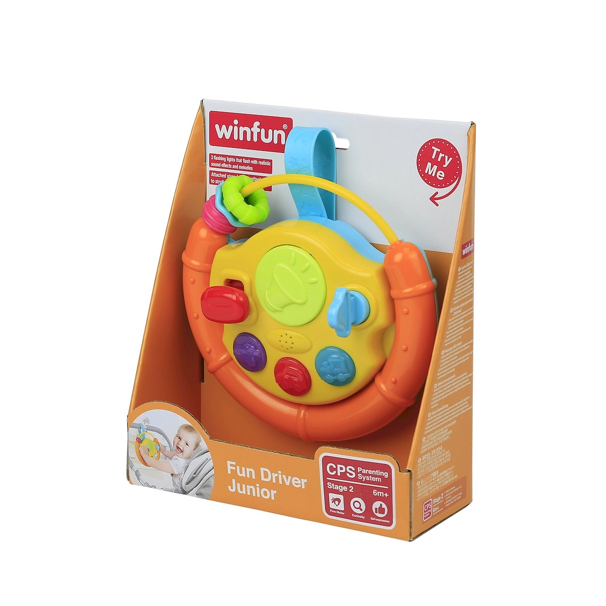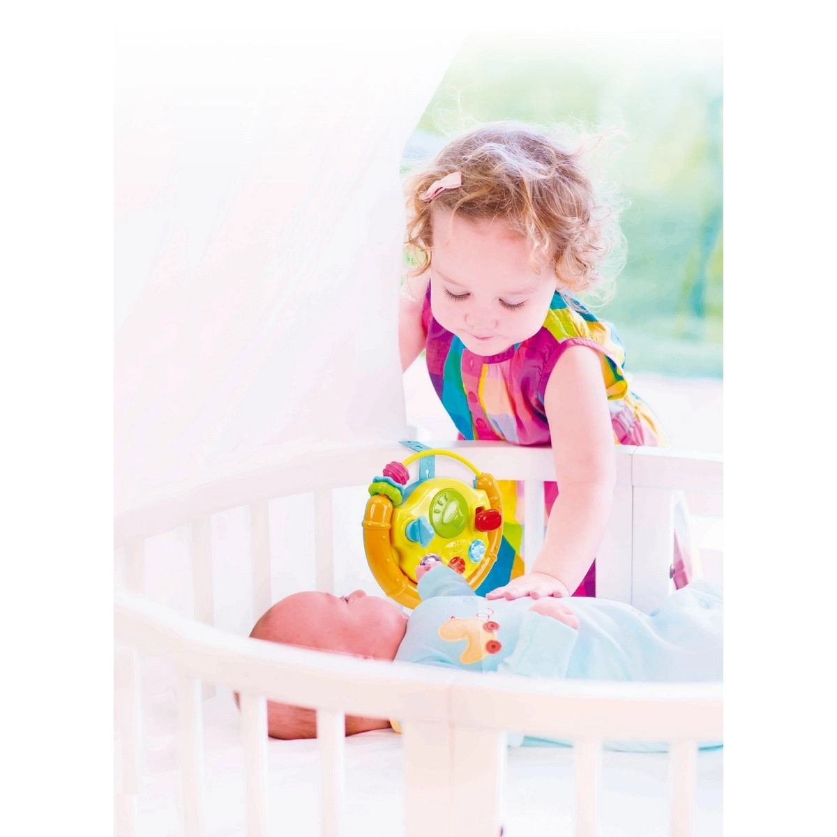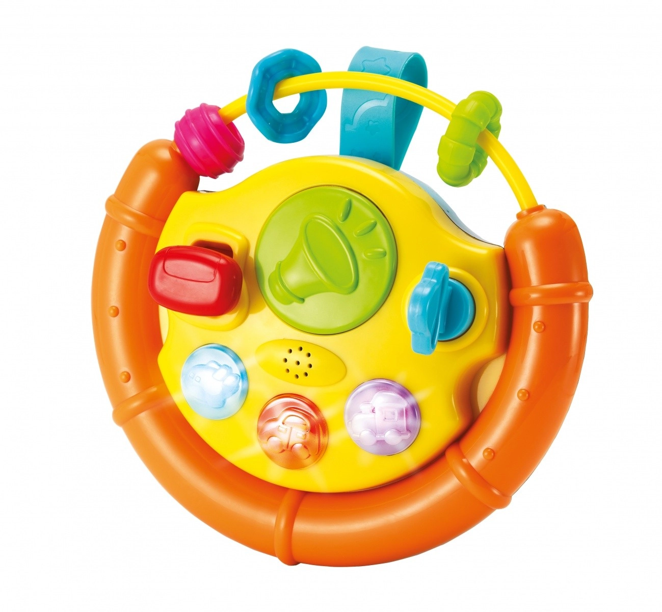 Ta barvit volan je idealna aktivacijska igrača za najmlajše. Otroke pritegnejo utripajoče lučke, vesele melodije in različni tipni dražljaji. Premišljeni deli, kot so kroglica, avtomobilček ali ribica, vabijo k raziskovanju ter vadijo prijem in koordinacijo oko–roka.