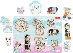 Odkrijte lesene sestavljanke Ice Castle z 8 odstranljivimi kosi z gumbi, ki so idealni za majhne otroške roke. Barvita grafika in podlaga z izrezanimi oblikami s črno-belimi obrisi pomagata otrokom zlahka najti pravo mesto. Ta igrača razvija fino motoriko, koordinacijo oko–roka in učenje oblik – odlična že od 18 mesecev.