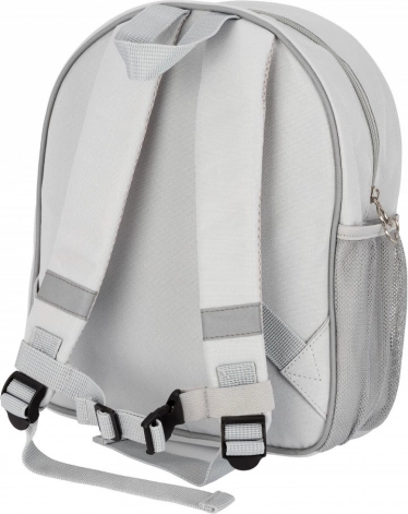 Glavni predal s široko zadrgo omogoča hitro pakiranje in razpakiranje. Ne manjka notranji žep za malico ali posodico, oznaka za ime in dva stranska žepa (eden iz mrežice) za plastenko z vodo. Trpežen vodoodporen material iz poliestra varuje vsebino nahrbtnika pri vsakodnevni uporabi.