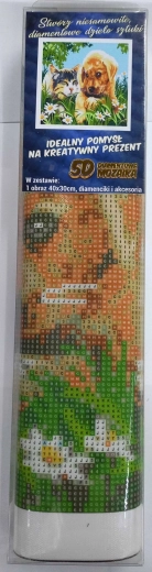 Kreativni komplet Diamantno slikanje Mali prijatelji 30 × 40 cm. Popoln paket, enostaven postopek, sprostitev za otroke in odrasle. Rezultat primeren za uokvirjanje.