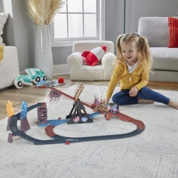 Z zahvaljujoč prilagodljivim delom in kretnici določite, ali bo Thomas peljal preko padajočega mostu ali pod njim. Modularni deli omogočajo hitre spremembe trase in gradnjo novih krogov. Set je združljiv z večino plastičnih tirov THOMAS & FRIENDS (razen lesene linije), zato boste svojo zbirko zlahka razširili.