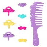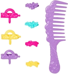 Barvite špangice, sponke in širok glavnik olajšajo razčesavanje ter trdno pritrdijo nove pričeske brez vlečenja.