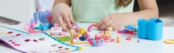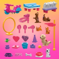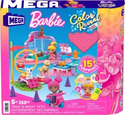 Sestavljanka MEGA Barbie Color Reveal prinaša svet poln skrivnosti in zabave. Z več kot 15 presenečenji se otroci potopijo v svet domišljije in ustvarjalnosti, razpakirajo mikro punčke in doživijo barvita razkritja. Sestavite lahko vadbeni poligon, kjer se živalice naučijo novih trikov, ter negovalno postajo, da svojim ljubljenčkom zagotovite najboljšo oskrbo. Odlično zabavo dopolnjuje gradnja skuterja za izlete z živalicami.