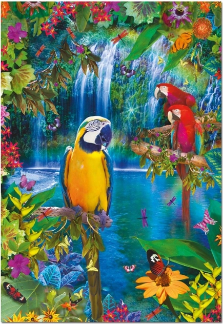 Sprostite se ob sestavljanju z motivom tropskega raja. 500 natančno izrezanih kosov, vzdržljiva zaščitna površina in elegantna barvna paleta zagotavljajo dolgo življenjsko dobo in čudovit rezultat. Del pakiranja je tudi lepilo za lepljenje dokončane slike in njeno obešanje na steno – odlično darilo za ljubitelje sestavljank.