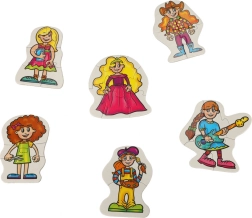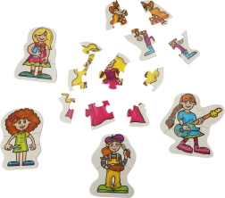 Komplet vsebuje skupaj 27 koščkov, razdeljenih na 6 slik s tematiko za punčke. Zaradi 3 mm debeline so koščki enostavni za držanje z malimi rokicami in se lepo prilegajo. Odlično kot darilo in kot aktivnost za skupno igranje s starši.