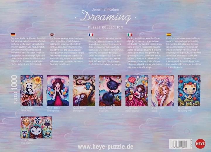 Odkrijte čarobni svet umetnika Jeremiah Ketnerja s sestavljanko HEYE Dreaming – Drevo želja s 1000 koščki. Uživajte v kakovostnem tisku, natančnem izseku in očarljivi ilustraciji, navdihnjeni z moderno secesijo, japonsko estetiko in anime slogom. Idealno za sprostitev ali kot stilsko darilo.
