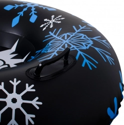 Napihljiva okrogla blazina s stilskim zimskim potiskom snežink je odlična izbira za male in velike ljubitelje snega. Močni stranski ročaji zagotavljajo zanesljivost in nadzor med vožnjo, medtem ko trpežen PVC in premišljena oblika omogočata hiter drs in veliko zabave.