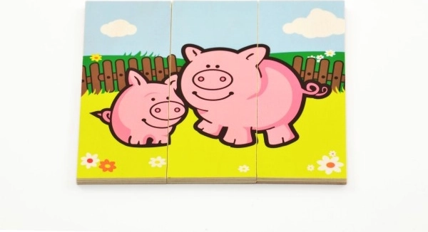 Ta komplet lesenih sestavljank je zasnovan posebej za najmlajše graditelje. Vsaka slika iz treh koščkov otrokom hitro pokaže uspeh, krepi njihovo samozavest in hkrati razvija koordinacijo oko–roka. Zahvaljujoč gladko obdelanim robovom in trpežnemu lesu je sestavljanje varno in prijetno.
