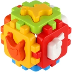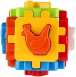 Ta klasična vstavljanka v mini izvedbi ima šest barvnih stranic z povezovalnimi ozobljenimi robovi, ki jih je mogoče preprosto sestaviti v kocko. Priloženi so vstavljivi liki in sestavljivi paneli, zato lahko otrok kocko razstavlja in znova sestavlja ter tako razvija koordinacijo roka–oko in prostorsko predstavo.
