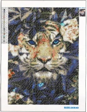 Ustvarite čudovito sliko Tigra v cvetju z diamantnim leskom. Slika je kreativni projekt z jasnimi navodili in barvno kodo za enostavno dokončanje.