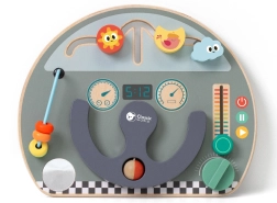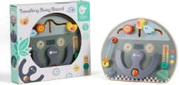Plošča je izdelana iz kakovostnega lesa s elementi iz trpežne plastike in je prebarvana z netoksičnimi barvami. Zaradi praktičnih mer je odlična za v avto, voziček ali za doma. Igrača podpira učenje skozi igro in zaradi številnih elementov ohrani otrokovo pozornost dolgo časa.