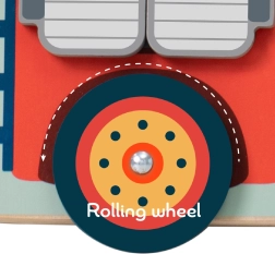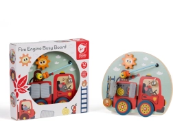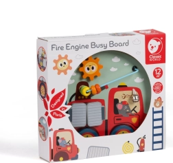 Lesena večnamenska didaktična tabla 6v1 z gasilski motivom znamke CLASSIC WORLD razvija otroške veščine od 12 mesecev dalje. Ponuja odpirajoča vratca, kroglice v labirintu, vrtljivo kolo, lestev, zvonček in vrtljiv gumb. Izdelana je iz kakovostnega lesa in barvana z netoksičnimi barvami za varno učenje skozi igro.