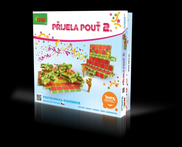 SEVA Prišla je sejmska zabava 2 je barvit in prilagodljiv gradbeni komplet, ki otrokom prinaša ure zabave in učenja. Zahvaljujoč pametnemu sistemu delov je mogoče preprosto sestavljati najrazličnejše sejemske atrakcije – od vrtiljakov do gugalnic – ter vedno znova odkrivati nove možnosti.