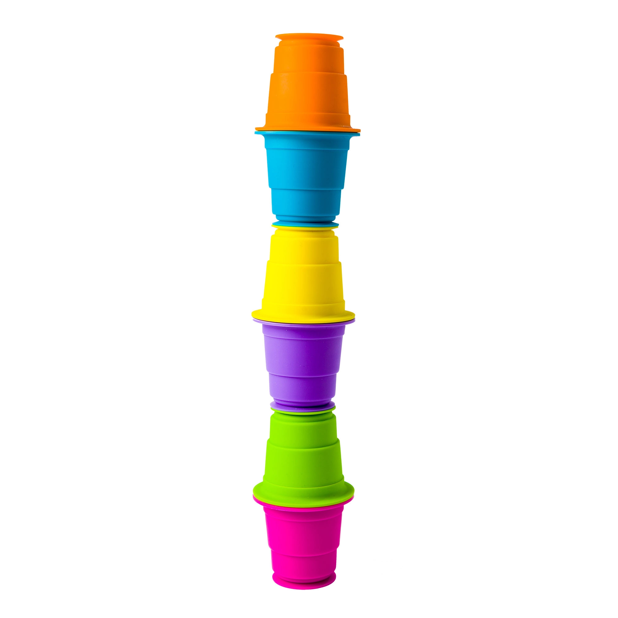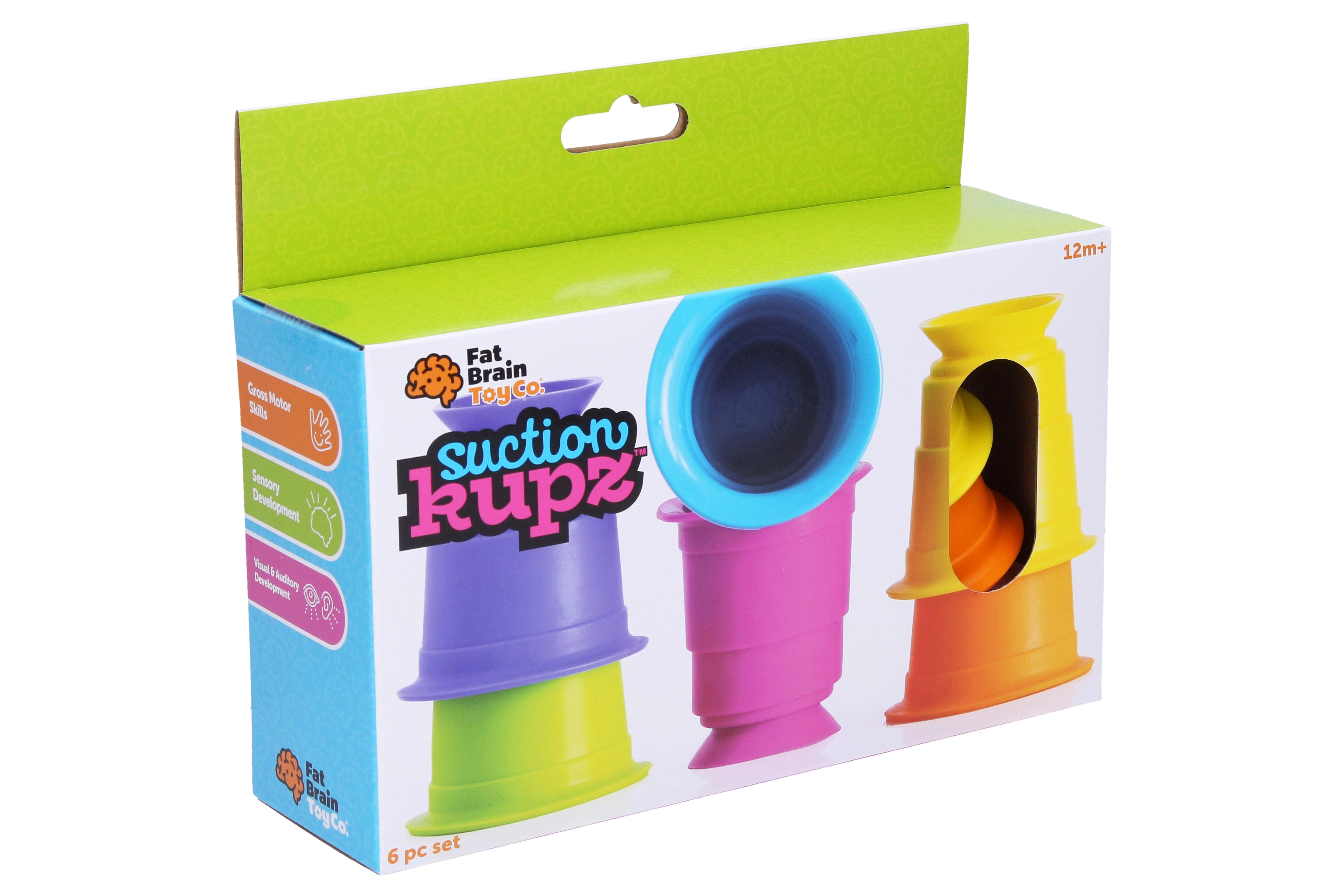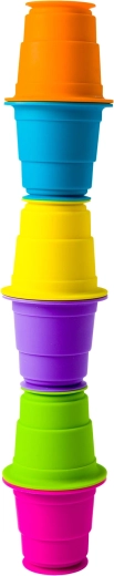 Odkrijte zabavni set šestih silikonskih lončkov SUCTION KUPZ, ki se zahvaljujoč priseskom odlično držijo na gladkih površinah in drug na drugem. So mehki, trpežni in enostavni za čiščenje, idealni za igro doma in v kadi. Žive barve spodbujajo zaznavanje, priseski prinašajo neskončne možnosti igre, zlaganje/vlaganje pa razvija fino in grobo motoriko.