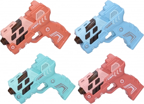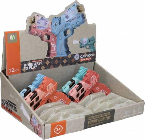 Zabavna otroška pištola velikosti 12 cm ponuja svetlobne in zvočne učinke ter projekcijo slike za še več akcije. Na voljo v 4 barvnih različicah (modra, zelena, oranžna, rožnata). Napajanje z 2× AAA baterijami, ki niso priložene.