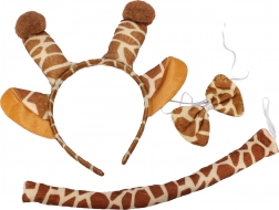 Iščete hitro in učinkovito karnevalsko preobrazbo? S tem kompletom na temo žirafe dobite vse na enem mestu. Obroč z ušeski, pentljica okoli vratu in rep ustvarijo igriv videz, ki pritegne na prvi pogled. Dodatek je odličen za otroke in odrasle ter se poda k oblekam, majicam in pajacem.