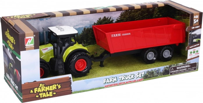 Odkrijte svet kmetijskih dogodivščin s tem robustnim traktorjem s prikolico. Pogon na vztrajnik zagotavlja preprosto upravljanje in gladko gibanje ne samo na kmetiji. Dolžina traktorja je impresivnih 36 cm, kar ga naredi odličnega za različne igre.