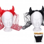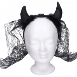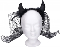 Dodajte svoji preobleki peklenski šarm s črnimi hudičevskimi rogovi s tančico. Praktičen naglavni obroč zagotavlja udoben in varen oprijem v laseh, medtem ko elegantna tančica pričara skrivnosten in izrazit učinek. Odlično za pust, noč čarovnic, službene zabave in šolske prireditve.