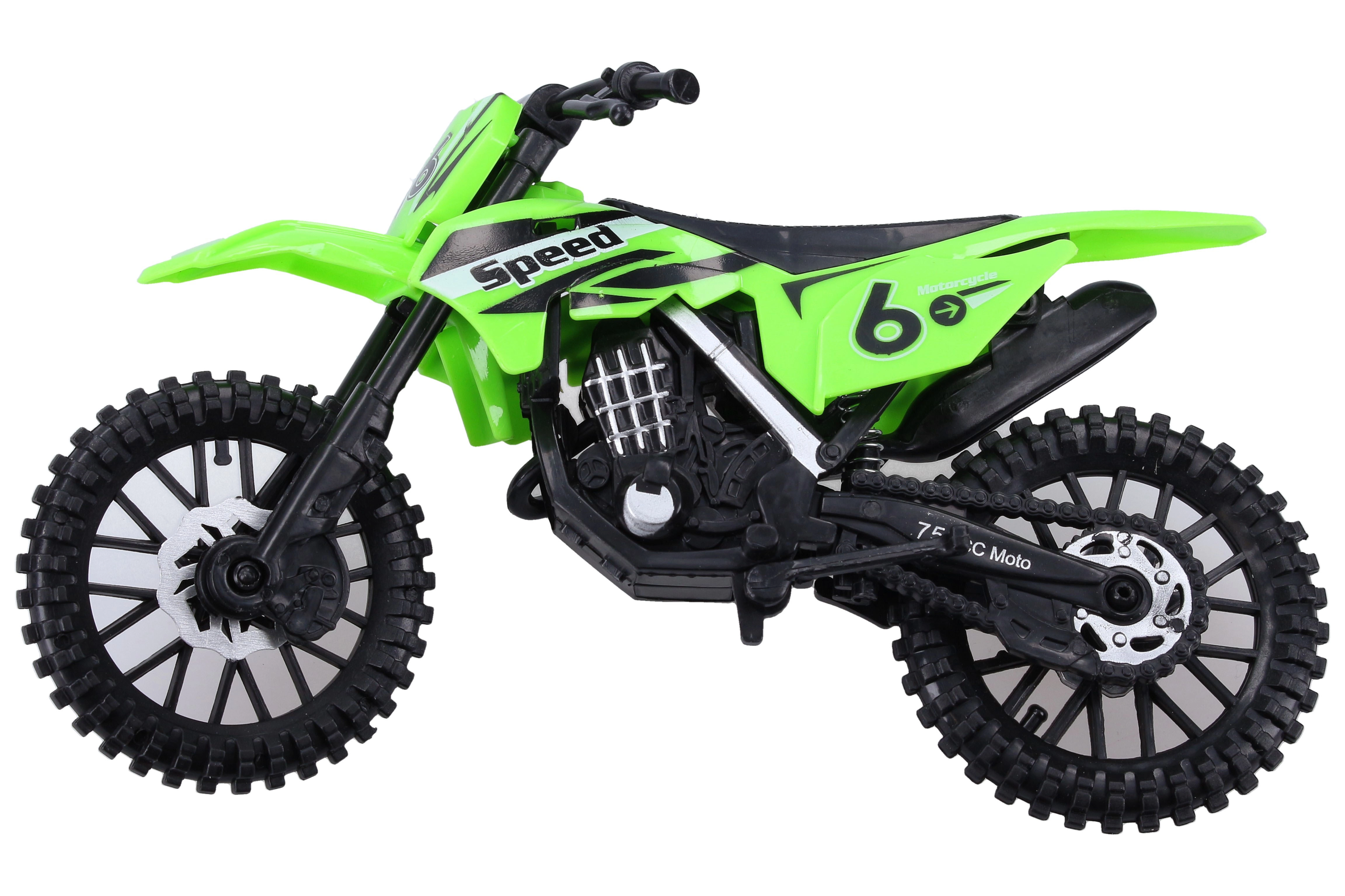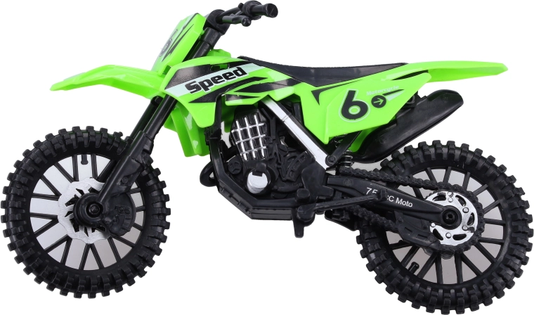 Slogoven plastični terenski motor dolžine 19 cm za male dirkače. Ponuja prosto vrteča se kolesa, realistične podrobnosti okvirja in motorja ter je na voljo v 3 privlačnih barvah. Odlična igrača za domišljijske vožnje in dirke doma in na poti.