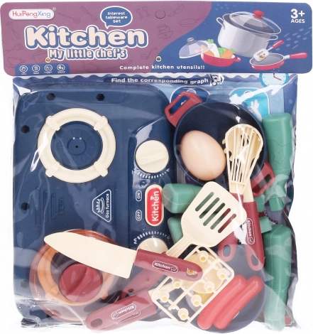 Ta kuhinjski komplet je odličen dodatek za otroško kuhinjo. Del kompleta so različne vrste posod in loncev, ki posnemajo resnične kuhinjske pripomočke. Otroci se lahko naučijo osnov kuhanja in razvijajo svojo domišljijo.