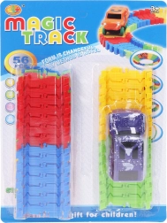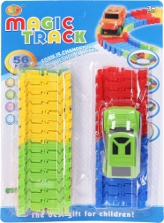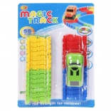 Uživajte v urah zabave s to otroško stezo, ki je priložena z avtomobilčkom dolžine 8 cm. Steza ne vsebuje svetlobnih ali zvočnih učinkov, zato je primerna za mirno igro. Avtomobilček je na voljo v štirih barvah: zeleni, rumeni, modri in vijolični. Zahteva 1x AA baterijo, ki ni priložena.