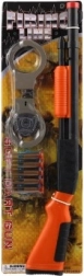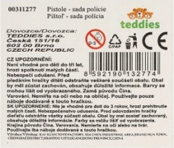 Komplet vsebuje vse potrebno za igro policista, vključno s puško, naboji, lisicami in značko.