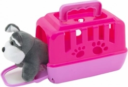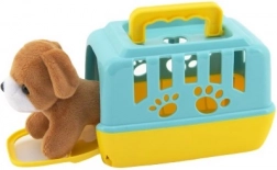 Ta set združuje mehkega plišastega kužka in lahek plastičen boks z zračnimi odprtinami ter ročajem za enostavno prenašanje. Otroci se lahko igrajo skrb za živalco, jo vozijo na izlete in jo polagajo spat – vse to na zabaven in varen način.