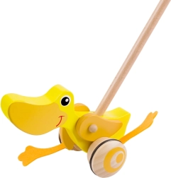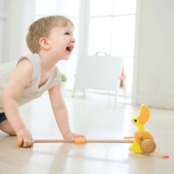 Izdelava iz lakiranega lesa in neškodljivih nestrupenih barv zagotavlja otrokom popolno varnost. Ta okolju prijazna igrača podpira razvoj hoje, koordinacijo, motorične sposobnosti in domišljijo.