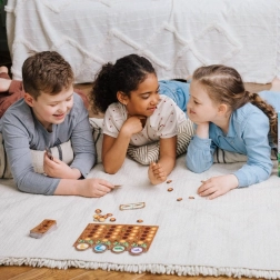 Vsi igrajo hkrati – brez dolgega čakanja na potezo. Preprosta pravila in živahen tempo ohranjata pozornost otrok in odraslih.