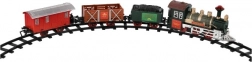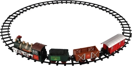 Set vključuje 8 kosov tirov, kar omogoča ustvarjanje kroga v velikosti 107 cm. Pot sestavlja 6 ovinkov in 2 ravna tira. Za delovanje potrebujete 2 x AA bateriji za lokomotivo (niso priložene).