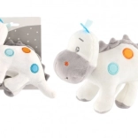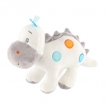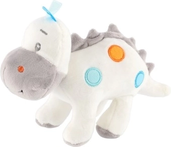 Ta plišasti dinozaver ni le igračni spremljevalec, temveč tudi čudovita dekoracija, ki popestri vsako otroško kraljestvo. Izdelan je iz nežnega in mehkega materiala, zato je idealen ljubkovalni prijatelj za otroke vseh starosti. Svetle barvne pikice v kombinaciji bele in sive barve dinozavru dajejo edinstven videz.