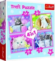 Otroška sestavljanka 4v1 z veselimi muckami ponuja štiri samostojne sestavljanke za male ljubitelje mačk. Vsaka slika meri 285 × 205 mm in ima različno število koščkov (35, 48, 54, 70), zato bodo v njej uživali tako mlajši kot starejši otroci. Izdelano na Poljskem iz okolju prijaznih materialov, priporočeno od 4 let.