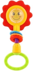 Prisrčna otroška ragljica in grizalo v obliki cveta z motivom levčka ali nasmejanega obraza. Ponuja vrtljiv ročaj s klikanjem, obročke za razvoj fine motorike in je primerno od 3 mesecev. Kompaktna mera 8 × 19 cm in trpežna plastika zagotavljata udobno in varno uporabo.