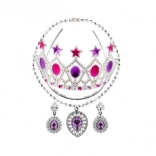 Ustvarite nepozabne pravljične trenutke z elegantnim kompletom za male modnice. Lahka plastična krona z bleščečimi kamni je dopolnjena z ogrlico in uhančki v ujemajočih se barvah, ki vsakemu kostumu dodajo kraljevski pridih. Komplet je zasnovan za varno domačo igro, pustne preobleke in otroška fotografiranja.