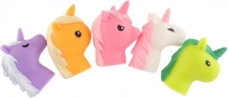 Ta set vsebuje pet gumijastih samorogov v različnih barvah, vsak z edinstvenim dizajnom in izrazom. Izdelani so iz kakovostnega materiala, kar zagotavlja njihovo trajnost in varnost pri igri.