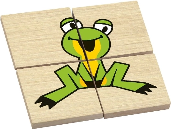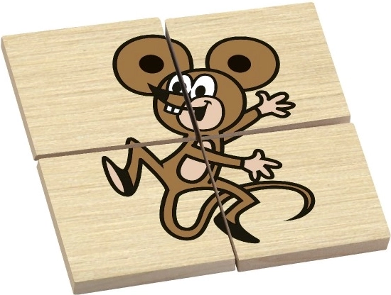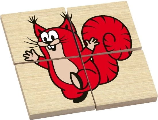 KRTEK, miš, jež, zajec, žaba in veverica na samostojnih štiridelných sestavljankah. Vsaka slika zabava, uči in spodbuja otrokovo domišljijo.