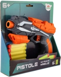Ta trendovska pištola z penastimi metki prinaša otrokom veliko akcije in zabave, pri čemer poudarja preprosto in varnejšo uporabo. Dovolj je, da v cev vstavite mehak penasti metek, napnete polnilni del, namerite in pritisnete na sprožilec. Zaradi kompaktnih mer 20 × 14 cm odlično sede v otroško roko.